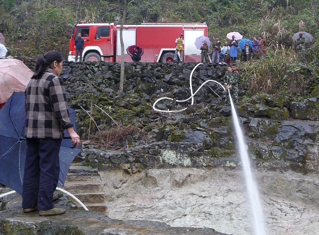金城江區(qū)保平鄉(xiāng)元洞村號洞屯100多位村民長期依靠一個(gè)330立方米的集雨水柜蓄水供給。由于持續(xù)干旱,去年12月,該水柜集水已干枯見底,群眾飲水十分困難。保平鄉(xiāng)黨委、政府立即啟動(dòng)抗旱應(yīng)急預(yù)案,一方面組織群眾采取自救措施,一方面積極與消防部門聯(lián)系利用消防車送水救援。
