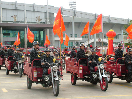 由于資金有限,這些隊伍除了配備正式的消防車外,還配備拖拉機簡易消防車45部,三輪消防摩托車40部等。消防人員介紹,這種消防隊更多的是集中在一些鄉(xiāng)鎮(zhèn)和農(nóng)村,這些裝備更適合農(nóng)村的地理環(huán)境,在滅火搶險救援中發(fā)揮著靈巧、迅速的作用。